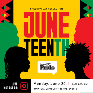 Join Campus Pride celebrating Juneteenth and discussing from an intersectional framework the work to be done around racial justice