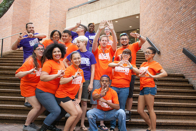Camp Pride 2014 Greek Unity Photo. Organizations represented include: Alpha Phi Omega National Service Fraternity Inc., Gamma Rho Lambda, Delta Lambda Phi, Delta Upsilon, Nu Phi Zeta Fraternity Inc., Pi Gamma Epsilon, Phi Kappa Tau, Phi Sigma Pi, Phi Sigma Sigma, Sigma Lambda Gamma National Sorority Inc., & Tau Kappa Epsilon